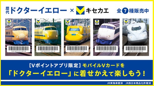 CCCMKホールディングス株式会社(本社:東京都渋谷区、代表取締役社長兼CEO:高橋誉則)は、Vポイントアプリの「モバイルVカード」を好きなデザインに着せかえできる「Vキセカエ」( (リンク ») )において、黄色の車体として親しまれ、幸運の象徴とされる『ドクターイエロー』や『新幹線』の車両を使用したデザイン全7種を、2025年2月26日(水)から販売いたします。