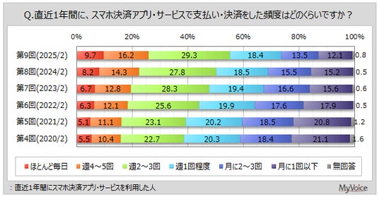 マイボイスコム株式会社(東京都千代田区、代表取締役社長:高井和久)は、9回目となる『モバイル決済(スマホ決済)』に関するインターネット調査を2025年2月1日~7日に実施しました。