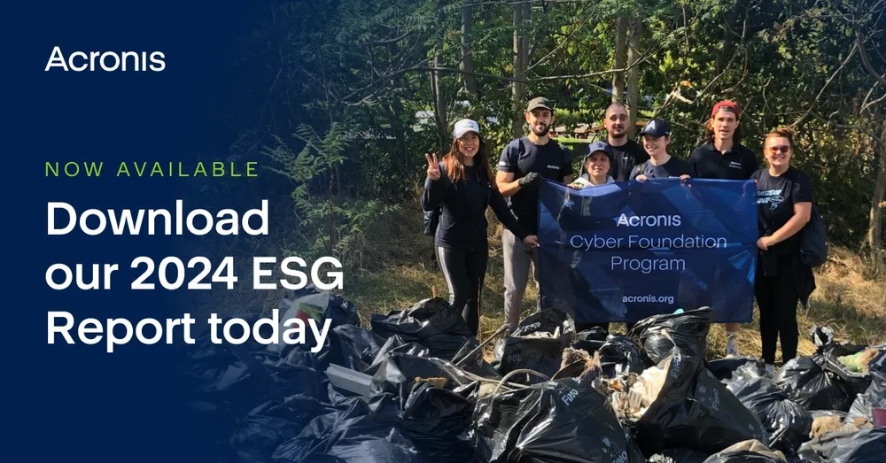 サイバーセキュリティとデータ保護のグローバルリーダーであるアクロニスは、2024 Environmental, Social, and Governance (ESG) Report(2024 年における環境、社会、ガバナンス(ESG)レポート)を公開しました。2024 年、アクロニスは環境効率向上の推進、ESG への取り組みの強化、パートナーへの支援とともにサイバーセキュリティを強化し、より良い未来の実現に貢献しました。ESG に責任を持つ組織として、アクロニスは、サイバーセキュリティを高めながら持続可能な拡大に向けた取り組みを維持し、環境およびグローバルコミュニティに有意義な効果をもたらしています。