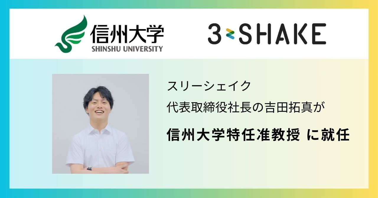 スリーシェイク代表取締役社長の吉田拓真が 信州大学特任准教授に就任