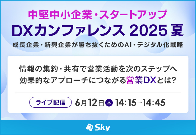 人材不足や原材料費の高騰、売り上げ不振など「ひと・もの・かね」の問題が多くの企業を悩ませています。重要なのは、組織に散在する情報を集約・共有し、営業活動の精度を高めること。そこで本セミナーでは、SKYPCEを活用した組織全体でのスムーズな顧客情報の共有についてご紹介します。