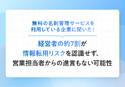 日々の営業活動で得た名刺を営業担当者が個人で管理することは情報の属人化を招き、ビジネスの広がりを阻害しかねません。また、担当者個人がフリーの名刺管理サービスを使用して名刺情報を管理することは、退職時の情報持ち出しや転職先での営業利用につながる可能性があります。名刺管理サービスは、これら課題を解決するためのサービスです。名刺情報を一元管理し、企業全体で共有することで営業活動の活性化が期待でき、多くの企業から関心を集めています。