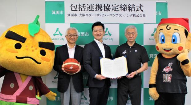「箕面市と大阪エヴェッサ/ヒューマンプランニング株式会社とのスポーツを通じた地域社会の発展に関する包括連携協定」