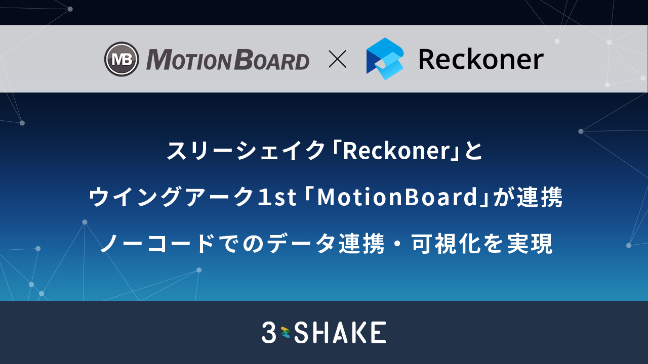 スリーシェイク「Reckoner」とウイングアーク1st「MotionBoard」が連携、 ノーコードでのデータ連携・可視化を実現