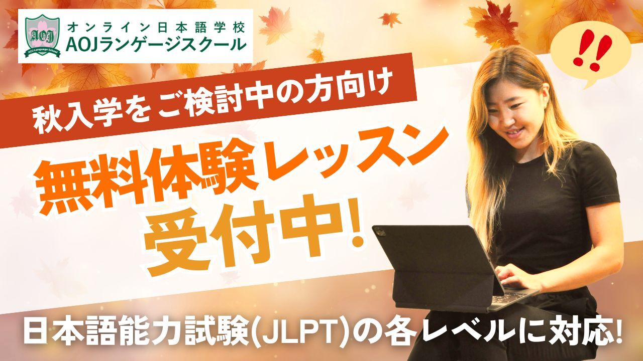 オンライン日本語学校AOJランゲージスクールでは、2025年秋学期開講に向け、9月14日(日)に、日本語能力試験(JLPT)レベル別の無料体験レッスンを開催 することになりました。