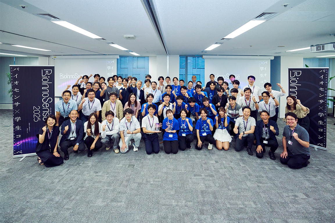 2025年4月の募集に始まり、講義、大学別のチームによる研究開発、中間発表と順調にプログラムが進み、その最終発表及び授賞式が8月31日に行われました。学生たちはわずか3か月ほどで、課題設定からバイオセンサの実機作製、さらにはビジネスプランを練り上げるという難題をこなし、プレゼンテーションに臨みました。最終発表は、1日目のデモンストレーション展示、ディスカッションと、2日目のプレゼンテーションにより審査が行われました。審査員である国内のバイオセンサ研究権威に加え、バイオセンサ関連や、新規事業開発に興味のある企業のお客様にも来場いただき、活発な議論が交わされました。