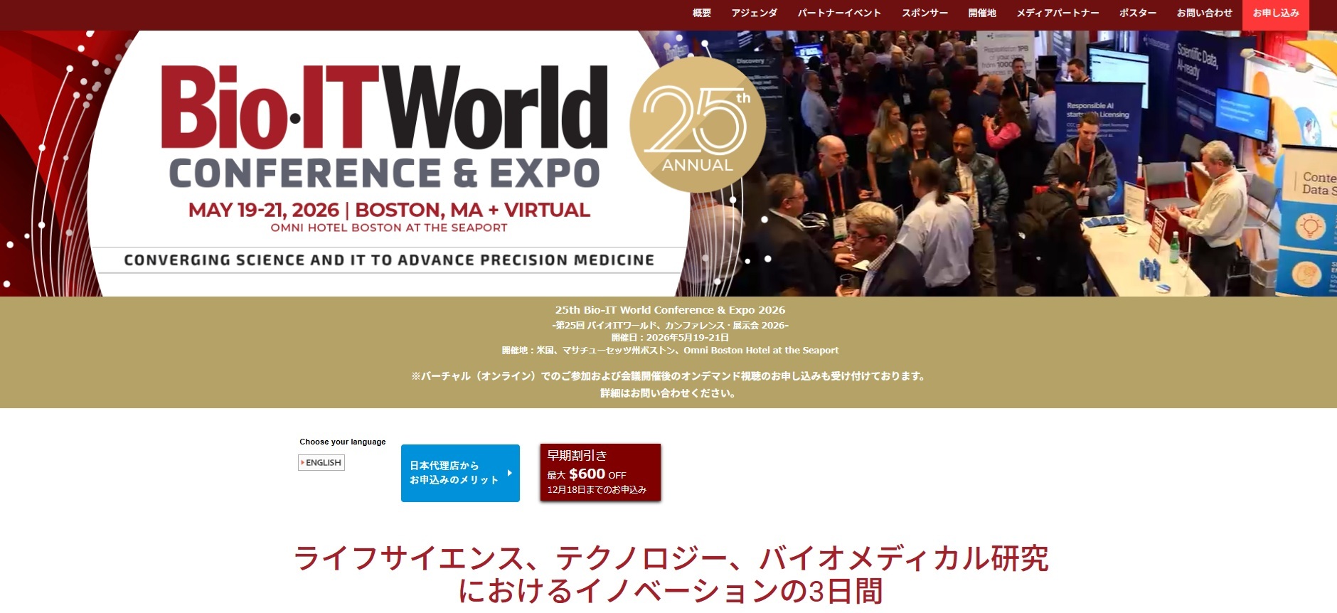 25th Bio-IT World Conference & Expo 2026にご参加希望の方は、お早めにお申し込みください。