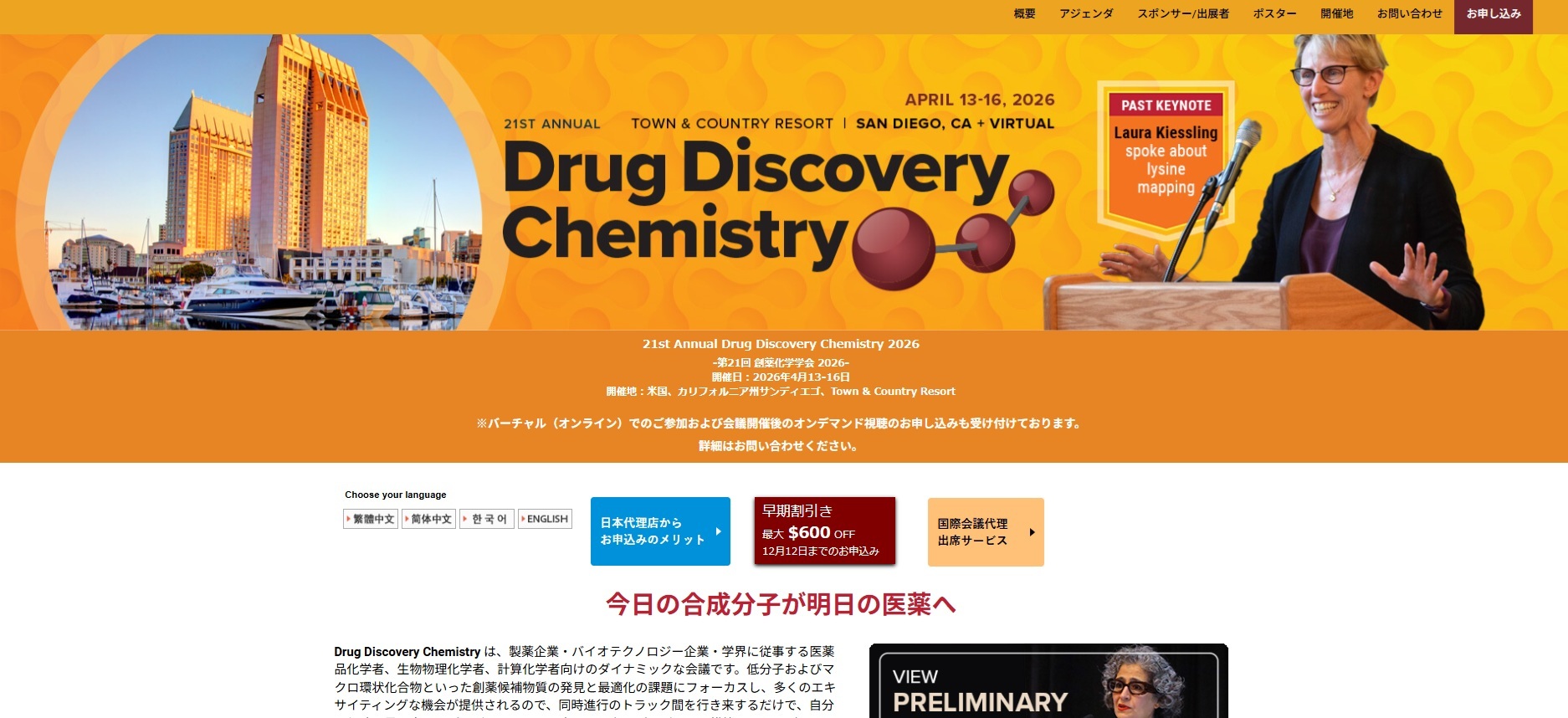 21st Annual Drug Discovery Chemistry 2026にご参加希望の方は、お早めにお申し込みください。