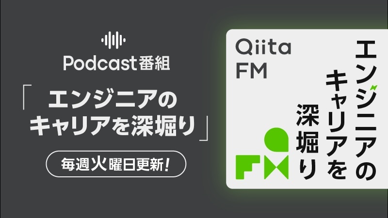 『Qiita FM』は、「エンジニアを最高に幸せにする」というQiitaのミッションに基づき、エンジニアの皆さまに役立つヒントを発信していく番組です。