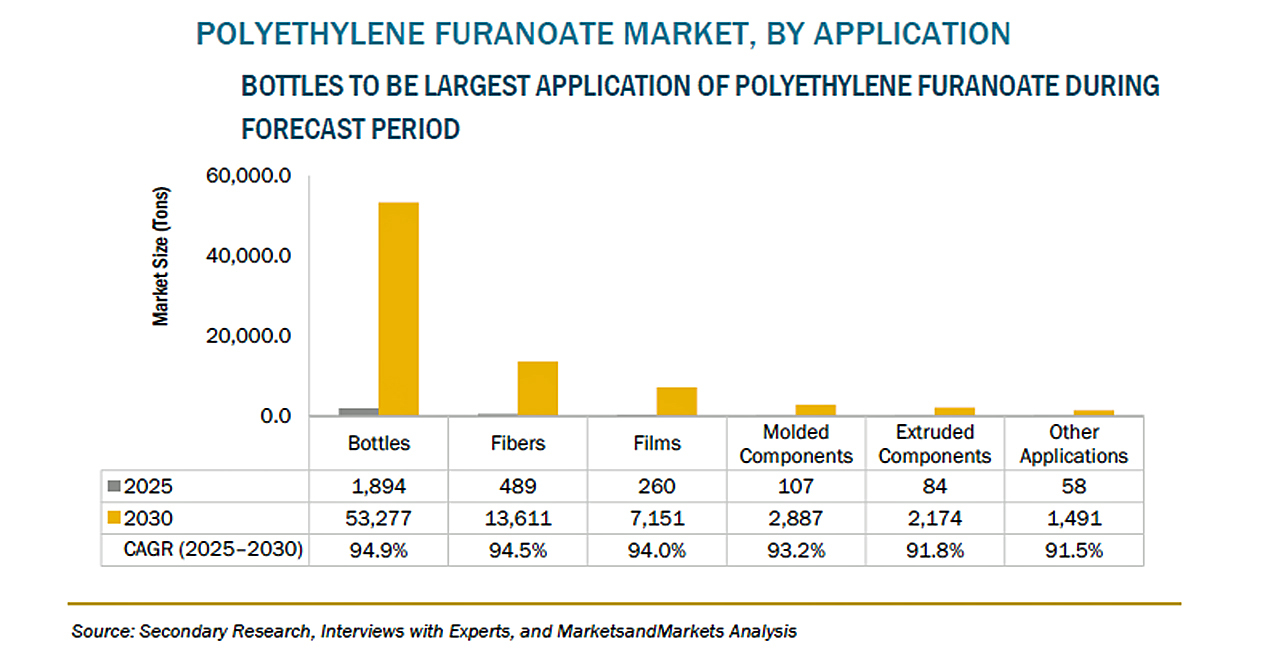 企業が生分解性で低炭素フットプリントの代替素材へ移行する動きは、食品・飲料、化粧品、医薬品などの包装用途におけるPEFの急速な成長を支えています。PEF生産への投資と技術革新の増加は、消費者と企業の双方における環境に優しい包装代替素材への需要拡大を反映しています。