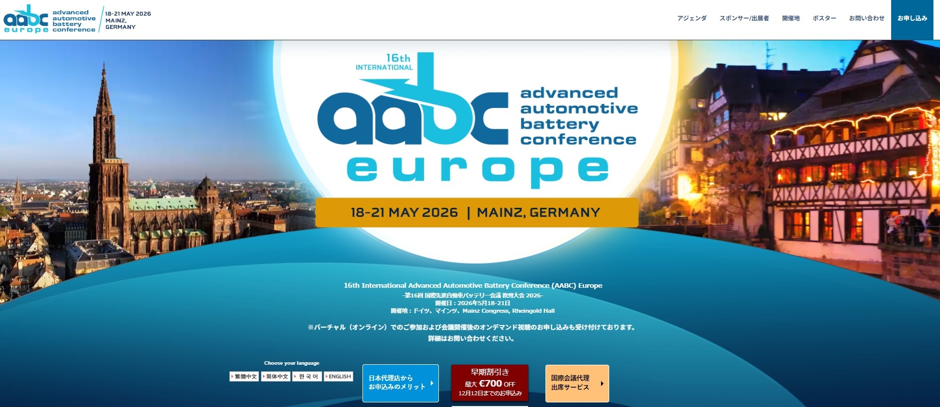 16th International Advanced Automotive Battery Conference (AABC) Europeにご参加希望の方は、お早めにお申し込みください。