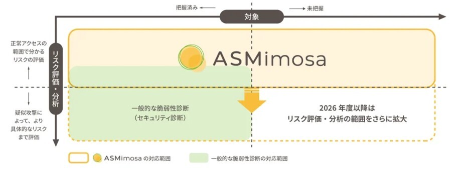 本サービスは、2026年度以降には、疑似攻撃によってより具体的なリスクも評価・分析できるように機能を高度化する予定です(図1を参照)。また、関連会社ごとに傾向を分析したレポートの提出や、ダッシュボード機能の拡充なども予定しており、使いやすさのさらなる向上を目指していきます。
