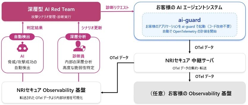 NRIセキュアでは、AIエージェントシステムのセキュリティ対策を継続的に支援していくために、本サービスと同様の内部状態可視化技術を応用した本番環境での継続的な監視サービス「深層型AI Blue Team[x]」を開発しています。既存の「AI Blue Team[xi]」を深化させたこのサービスでは、本サービスで発見した脅威パターンを監視ルールに採用することで、診断から監視へのシームレスな移行が可能となり、「診断→監視→改善」の持続可能なセキュリティ運用サイクルを構築できます。「深層型AI Blue Team」は2026年前半の提供開始を予定しており、現在、PoC(Proof of Concept:概念検証)に参加していただける企業を募集しています。