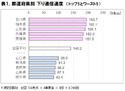 表1.都道府県別下り通信速度(トップ5とワースト5)