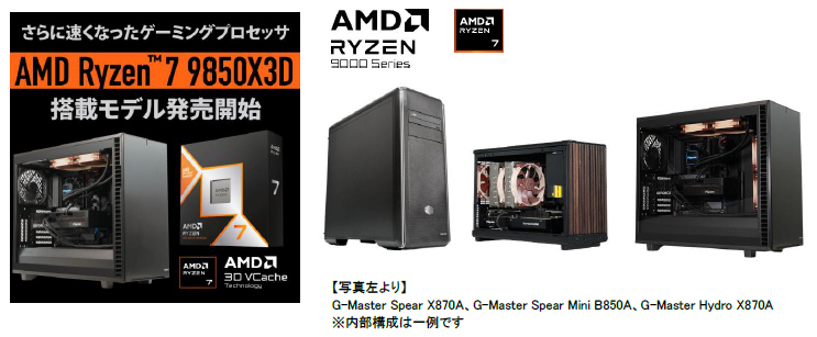 確かな品質でハイパフォーマンスPCの製造を行うパソコンメーカーの株式会社サイコム(本社:埼玉県八潮市/代表取締役:河野 孝史)は、最新のAMD Ryzen(TM) 9000シリーズ デスクトップ プロセッサ「Ryzen(TM) 7 9850X3D」を、当社BTOパソコンのAMD搭載各モデルにおいてCPUカスタマイズのラインナップに追加し本日1月30日(金)より販売開始します。