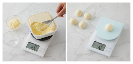 どちらの機種も、タニタのクッキングスケール独自の機能「すぐゼロ」「すぐピタ」※1を搭載しています。電源を入れてから約1秒でゼロ表示となりすぐにはかり始められ、食材などを計量皿に載せて1秒以内※2に重さを表示します。「ファミリーパックモード」や「メモいらずモード」を使って連続ではかる際に、時短に加えて、表示のタイムラグによる計量ミスの防止に役立ち、はかるストレスを軽減します。最大3キログラムまではかれるので、業務用の大容量食品や重いボウルを使った計量でも使用できます。最小表示は0.1グラム※3で、水や牛乳はミリリットルで確認できます。「防じん防水保護等級(IPコード)」のIP65とIP67※4を取得しており、本体はまる洗いができる他、一時的な水没にも耐えうるので、日常のあらゆる使用シーンで安心して使えます。この他、計量物を下ろした後でも約20秒間表示が固定されて値を確認できる「フリマモード(HOLDモード)」を備え、表示画面が隠れるような大きなものの計量にも対応します。