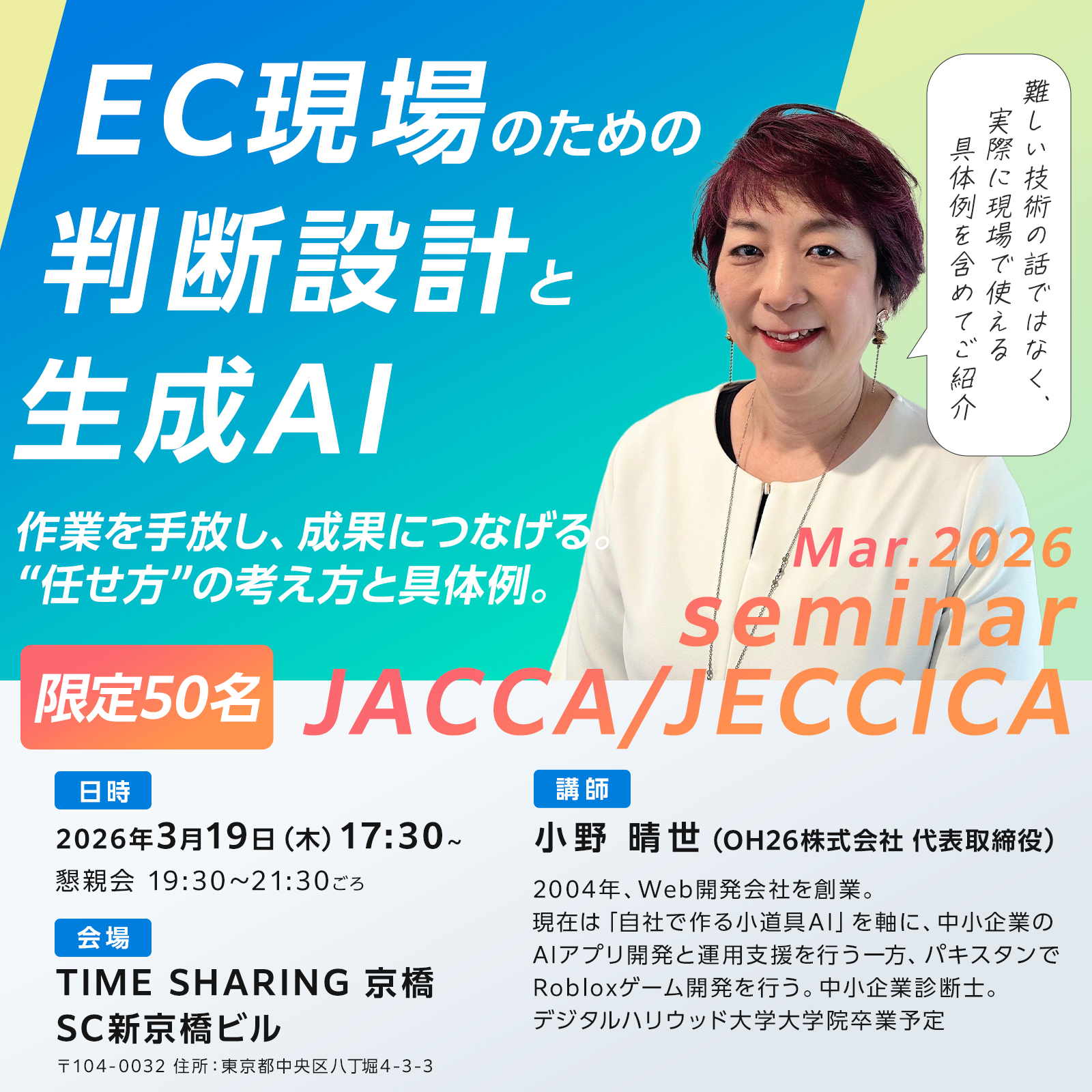 EC現場のための「判断設計と生成AI」 サブタイトル:作業を手放し、成果につなげる。“任せ方”の考え方と具体例のセミナー
