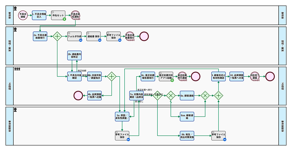 不具合連絡アプリのワークフロー図
