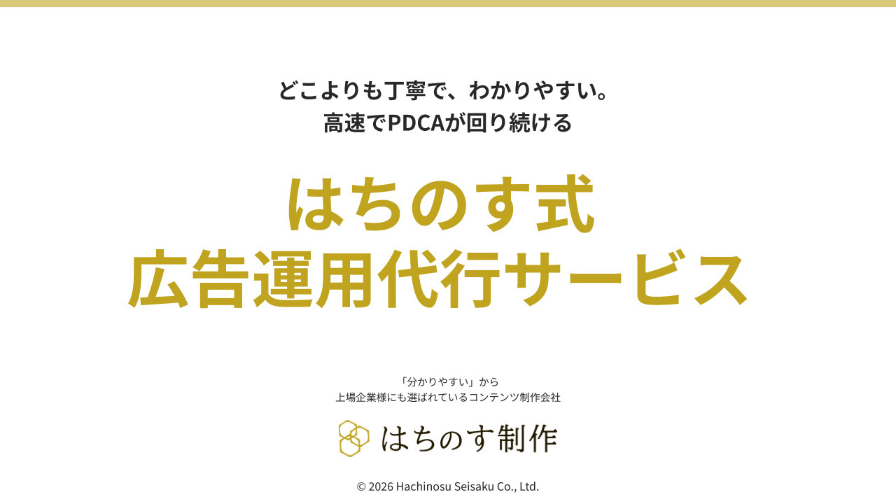 週次改善とリアルタイムデータ共有を軸にした広告運用体制を構築し、「はちのす式 広告運用代行サービス」として提供を開始しました。