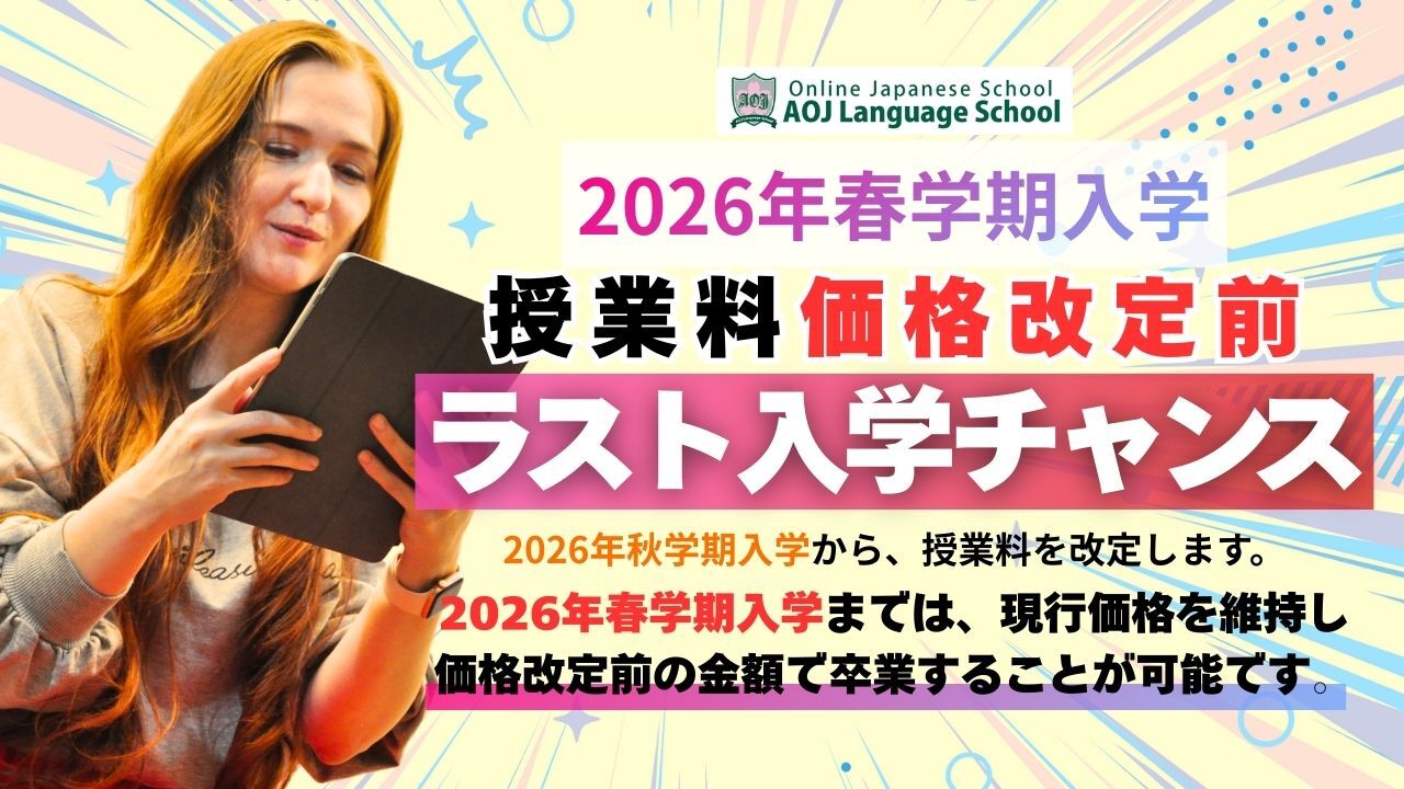 ・AOJランゲージスクールはオンラインで学ぶ日本語学校です。ライブ授業とオンデマンド動画学習により、世界のどこからでも、高品質な日本語学習にアクセスできます。