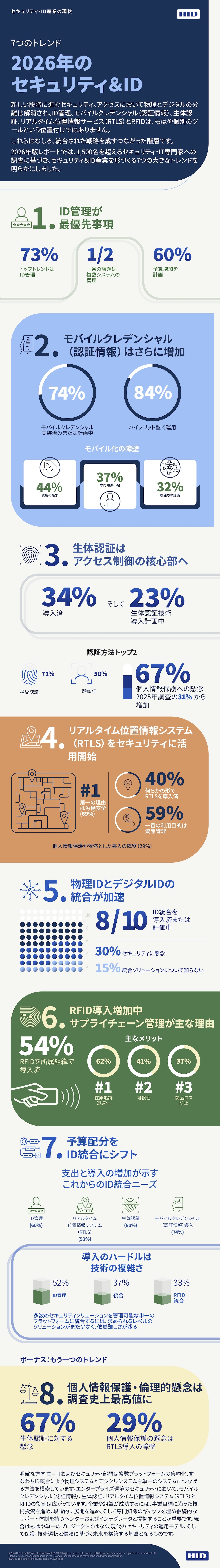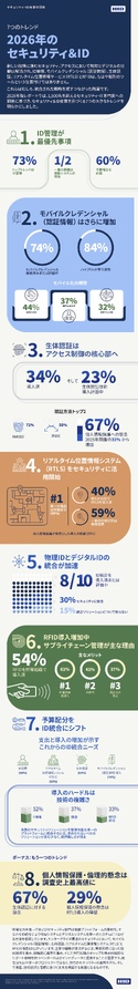 HIDが「2026年版 セキュリティ産業の現状レポート」を公開。1,500名を超えるセキュリティ・IT担当者、エンドユーザー、当社のパートナーへの調査をまとめた7つの最新トレンドで、セキュリティが新しい段階に進んでいることを明らかにした。