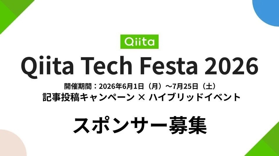 「Qiita Tech Festa 2026」を応援してくださる企業を募集します。スポンサーにご興味のある方は以下よりお気軽にお問い合わせください。