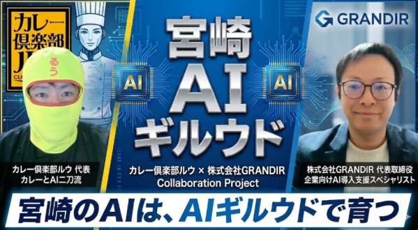 人手不足、採用難、情報発信不足、業務効率化。こうした課題に直面する宮崎県内の企業や個人事業主に向けて、宮崎県都城市の「カレー倶楽部ルウ」を運営しながら県内各地でAI活用の普及に取り組むルウ王子と株式会社GRANDIRはこのたび地域密着型のAI支援プロジェクト「宮崎AIギルウド」を始動いたします。