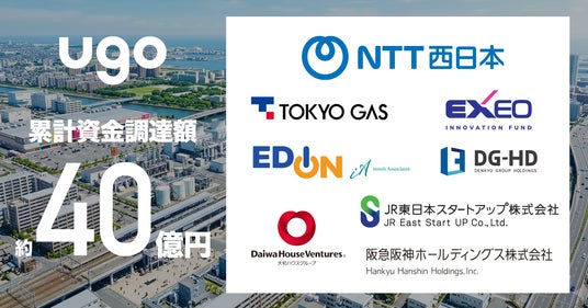 ugo(ユーゴー)株式会社(代表取締役CEO:松井 健、以下、ugo)は、NTT西日本株式会社(代表取締役社長:北村 亮太)をリード投資家とし、通信・鉄道・エネルギー・不動産・小売・物流など社会インフラを支える事業各社を引受先として第三者割当増資を実施し、シリーズB3ラウンドの資金調達を完了いたしました。これにより、累計資金調達額は約40億円となります。