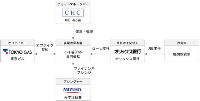 みずほ証券株式会社(取締役社長:浜本吉郎、以下「みずほ証券」)、CHC Japan株式会社(代表取締役:アル・アワ・アメード・ザフワット、以下「CHC Japan」)、およびオリックス銀行株式会社(代表取締役社長:寺元寛治、以下「オリックス銀行」)は、CHC Japanが開発する系統用蓄電所(以下「本蓄電所」)を対象とした100億円のプロジェクトボンド(※1)(以下「本プロジェクトボンド」)を組成しました。本件は、国内初(※2)となる系統用蓄電所の開発資金を使途としたプロジェクトボンドとなります。