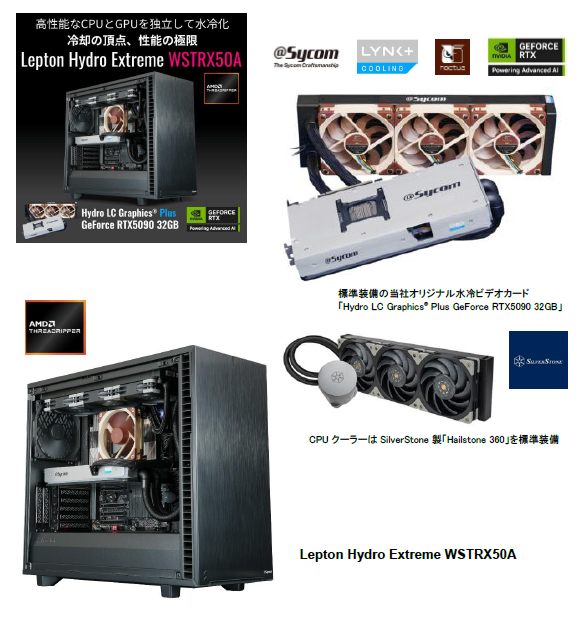 確かな品質でハイパフォーマンスPCの製造を行うパソコンメーカーの株式会社サイコム(本社:埼玉県八潮市/代表取締役:河野 孝史)は、AMD Ryzen(TM) Threadripper(TM) 9000シリーズ ハイエンド デスクトッププロセッサと、NVIDIA(R) GeForce RTX(TM) 50シリーズの最上位モデル「NVIDIA(R) GeForce RTX(TM) 5090」を標準搭載した、絶対的なパワーと圧倒的なスピードを誇るデュアル水冷(R) シリーズ最上位版のワークステーション「Lepton Hydro Extreme WSTRX50A」を本日4月23日(木)より販売開始します。