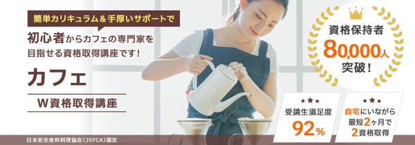 講座で学ぶ内容は日本安全食料料理協会の「コーヒーソムリエ」( (リンク ») )、日本安全食料料理協会の「カフェオーナー経営士(R)」( (リンク ») )それぞれの資格試験対策になっています。